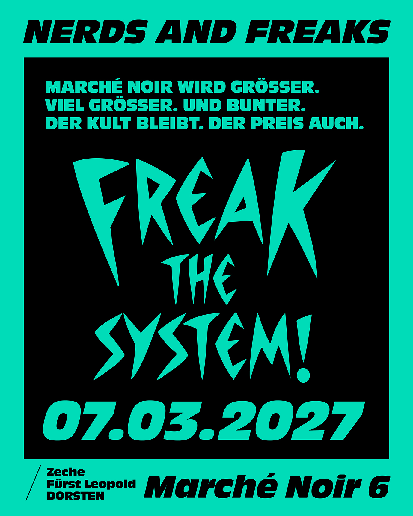 Ein Wochenende, welches zur Legende werden kann. Macht was draus. Wir erweitern unser Marché Noir-Event um eine Party. Nicht irgendeine Party. ADULT NERD ENTERTAINMENT. Doch Vorsicht: Wir werden eure roten Bäckchen bemerken, wenn ihr am Sonntag zum großen Finale in die Waschkaue stolpert.